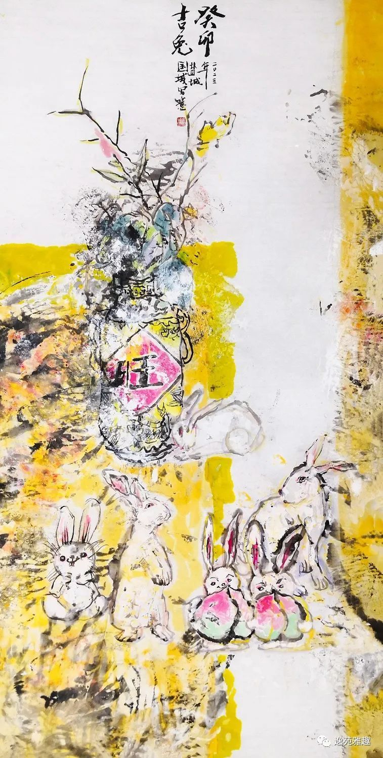 《癸卯吉兔》 120cmx210cm 纸本设色 2023年