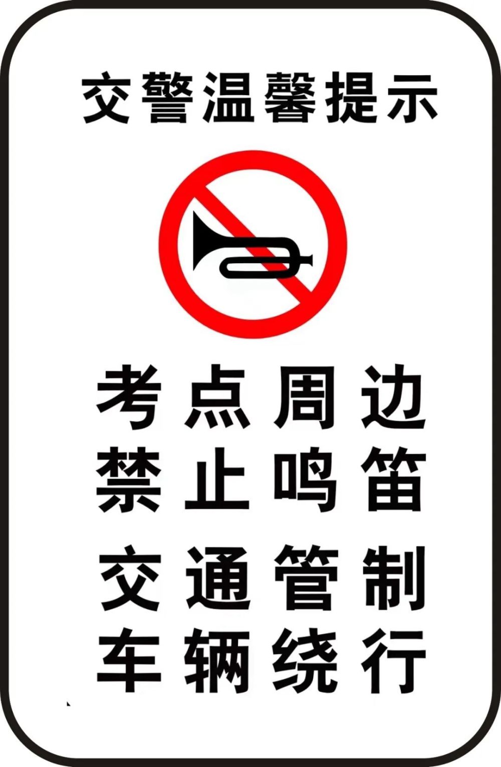 管制措施:管制路段内禁止机动车驶入;考点周边道路禁止机动车鸣笛、鸣号、乱停乱放。