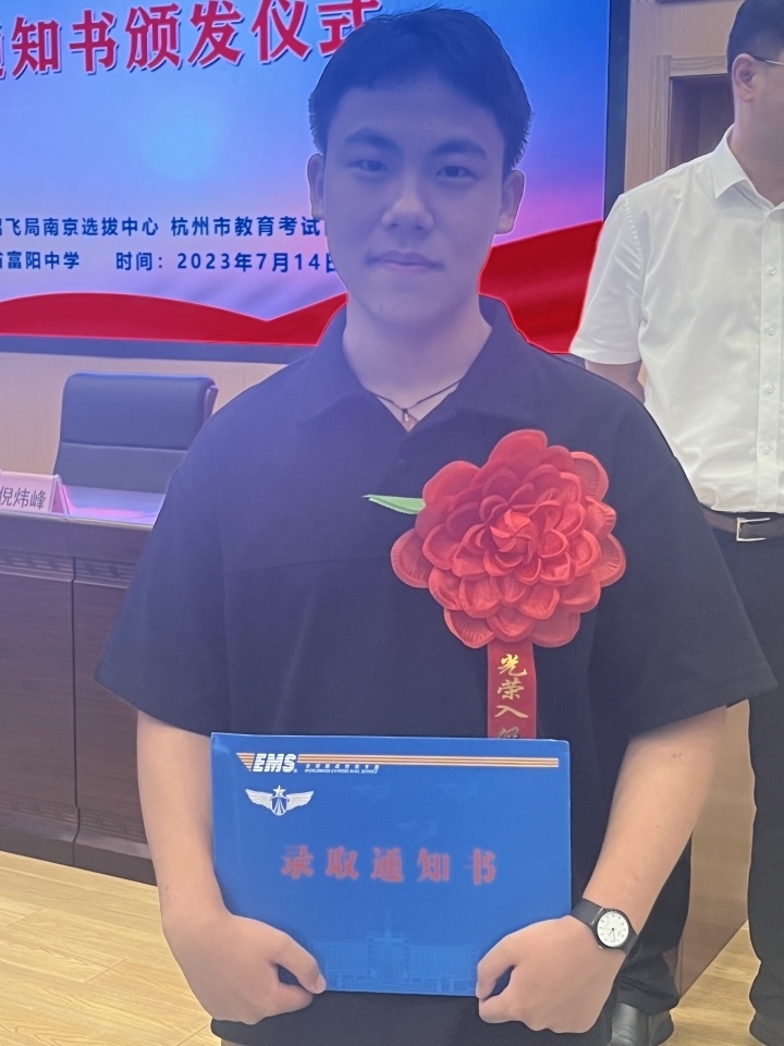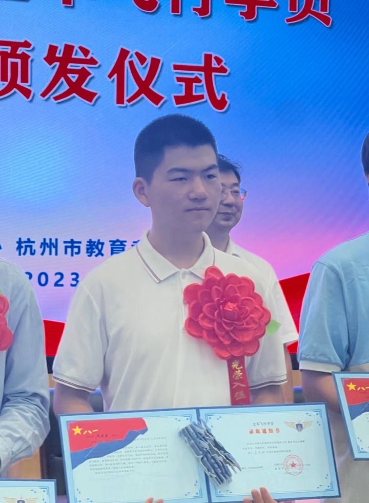 卢哲瑜是杭州市西湖高级中学的第三位空军飞行学员(另两位是2009届赵波、2012届张润泽)。