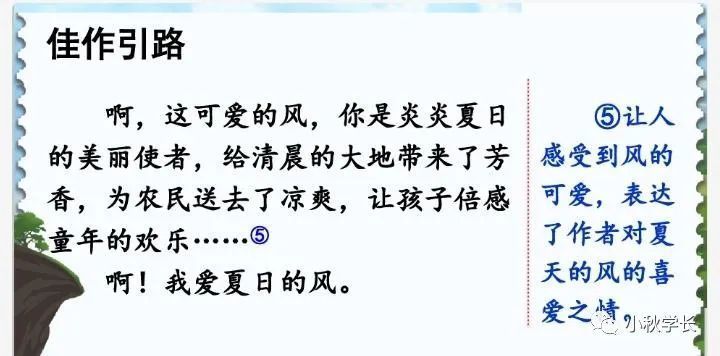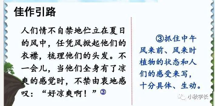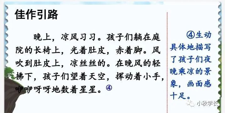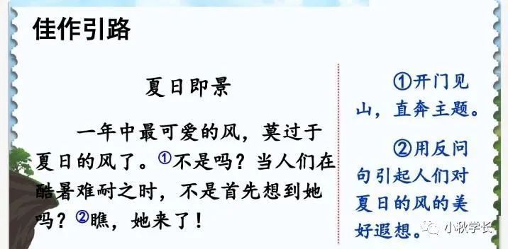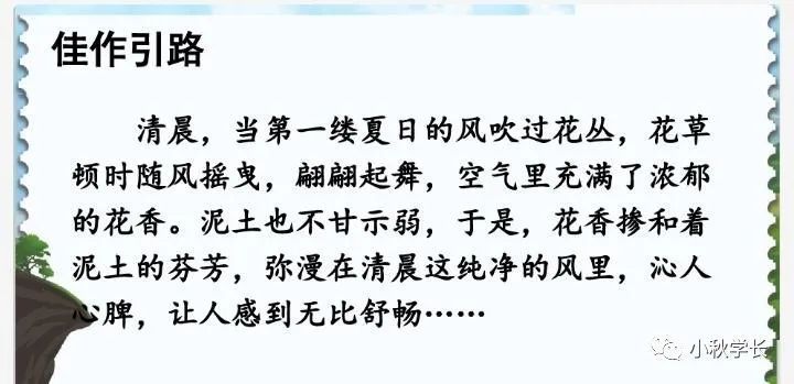 如,课文《四季之美》涉及春、夏、秋、冬四个季节,从全篇来说,“四季之美”就不是即景;但其中春天黎明天空颜色的变化、秋天黄昏归鸦回窠的情景,就是“即景”。