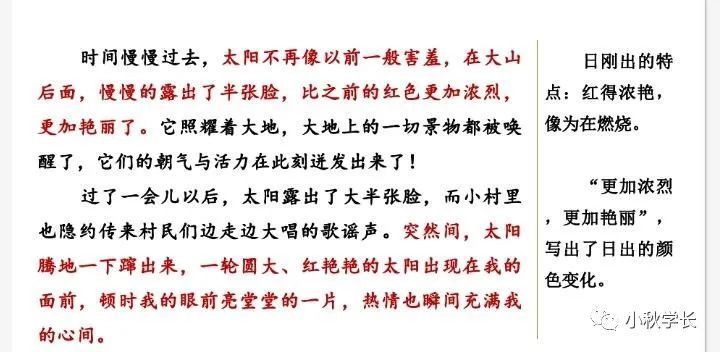 (2)作者在写景物变化时,运用了“先、再、渐渐地”这些有承接关系的词语,使月亮升高的过程更清晰。