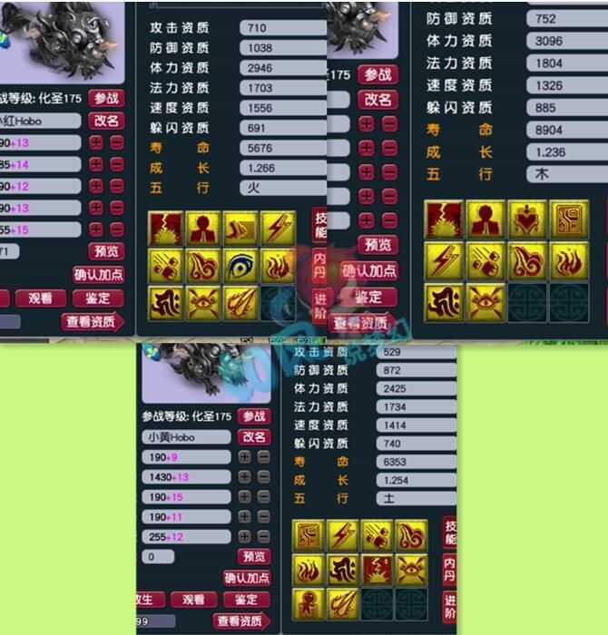 在宝宝方面,熊无敌除了传统三攻物理号的配置之外,在谛听方面的投资力度特别大。他配了3只10技能以上的法谛听,并且其中2只还是5轮车法谛听。
