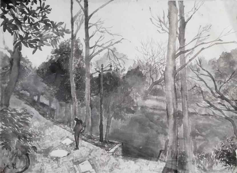 汪泱《小火车重现》41x33cm? 纸本水墨? 2020
