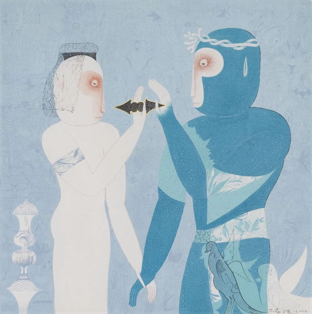 李浩《无 能 得 力 量 一 部 理 想 主 义 的 x x 史》76 x 53cm?纸本丙烯? 2022