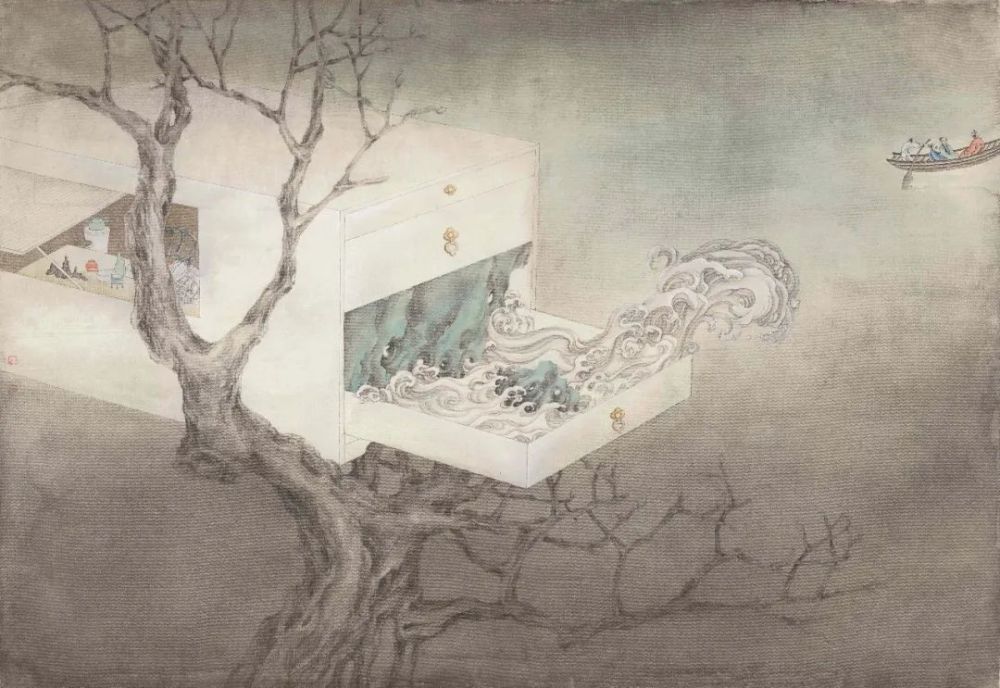 董津金《夜游赤壁》55×80cm?绢本设色 2019