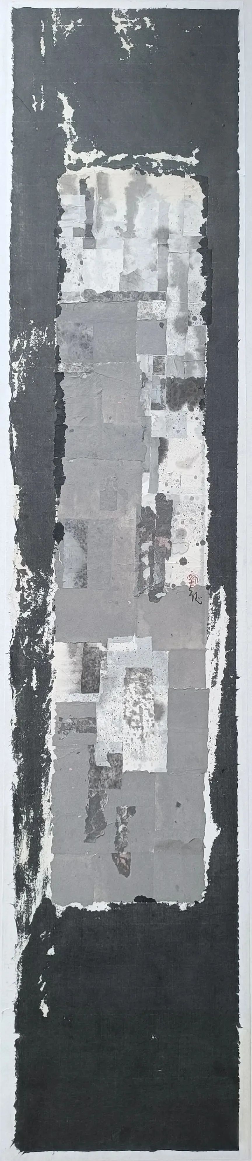 刘文德《样日夜2019-3-3》?143x29cm 水墨、自制手抄纸、棉宣纸?2019