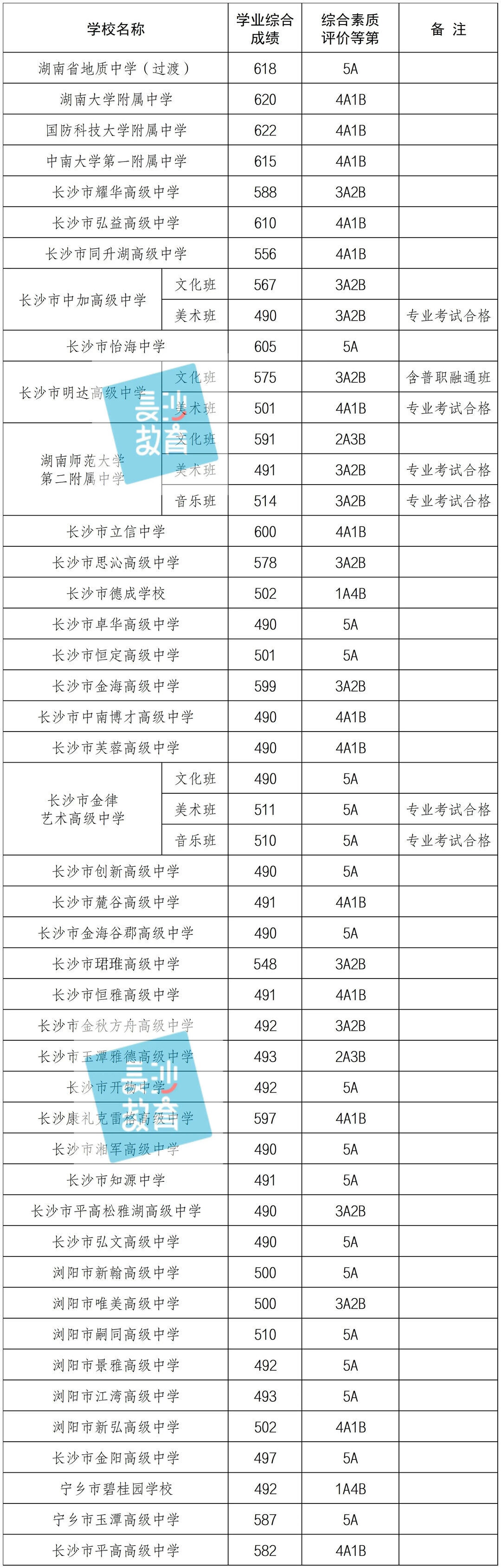 根据《关于做好2023年长沙市城区高中学校招生工作的通知》(长教通〔2023〕17号)等文件要求,长沙市教育局中招办划定上述普通高中学校招生最低录取线。