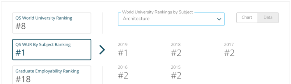 在2018年QS世界大学建筑学专业排名中,巴院位列欧洲第一,全球第二,仅次于麻省理工建筑学院:但在2019年巴院勇超麻省理工,拿下全球第一的位置。