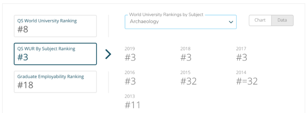 在QS专业排名中,UCL的考古学自2016开始就稳稳地处在世界第三的位置岿然不动。