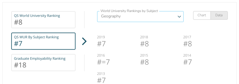 UCL地理系可以说和UCL一样是一名稳定的种子选手,这7年来的QS专业排名都稳定在世界第7-8名的位置,这意味着看重排名的学生可以放心申请、放心就读、放心毕业,一路妥妥滴。