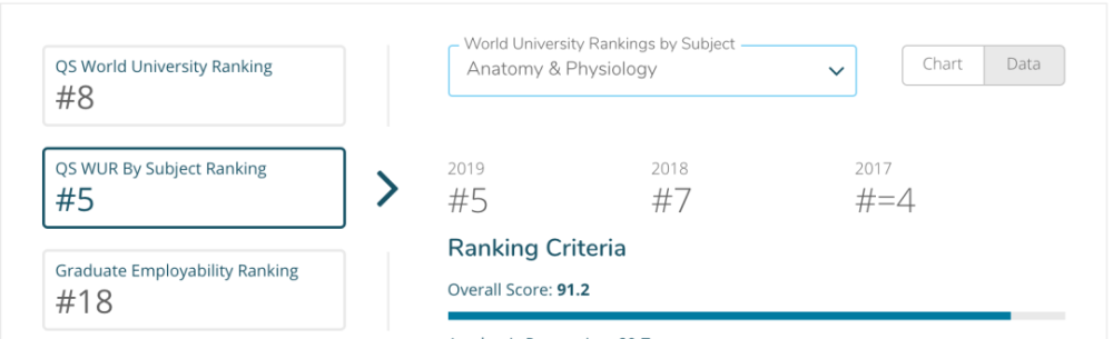 解剖与生理学除了2018年有所下跌外,基本保持世界前五的位置。