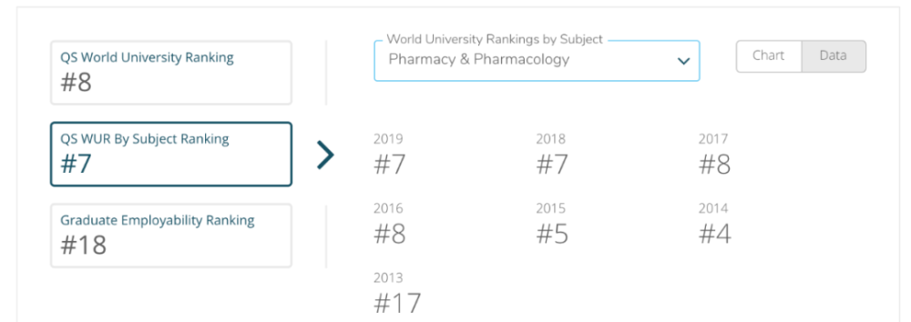 药剂与药理学从2013年的十名开外稳定到现在的世界第七位置。