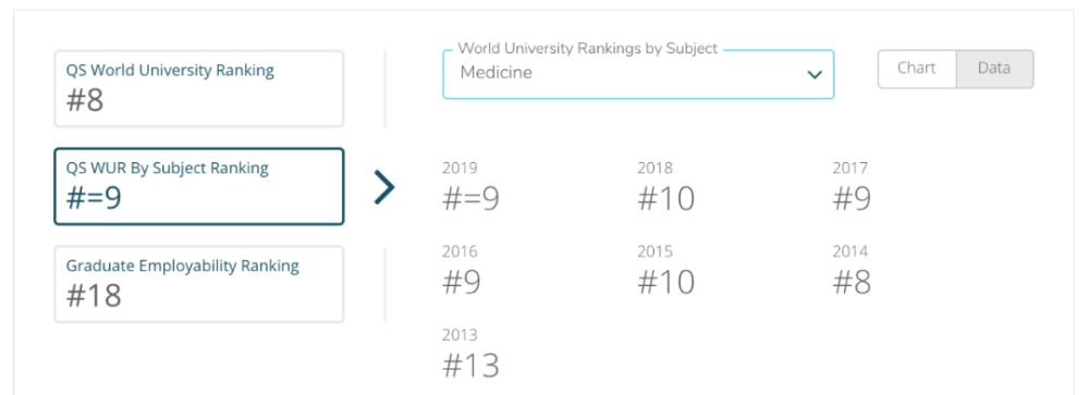 (处理非手术技术的)医学专业则自2014年以来一直稳定在世界前十以内。