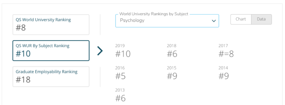 心理学的专业排名虽然有一定的上下波动,但是也一直稳定在世界前十内。