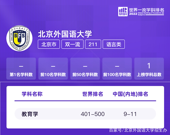 最新!软科世界一流学科排名出炉,北外这一学科跻身全球500强!