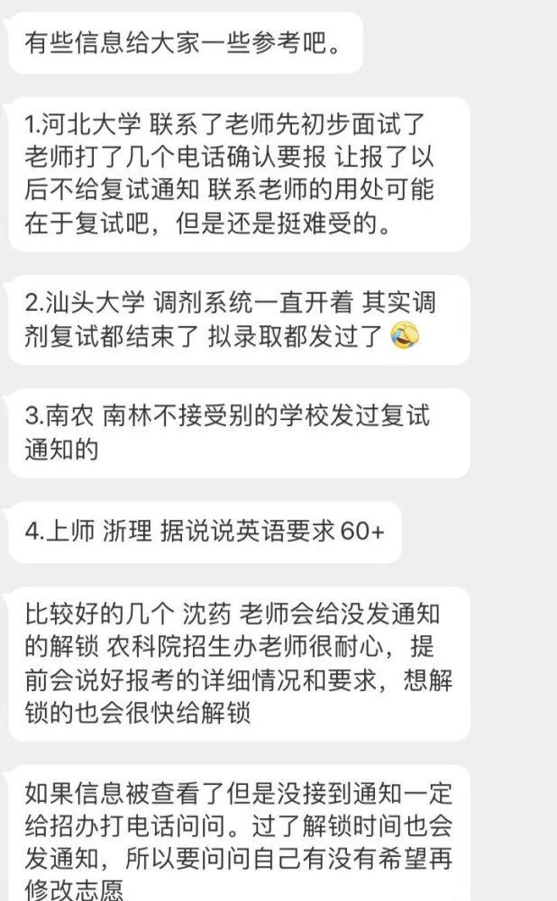今年的调剂虽然还没有结束,但是已经有很多学校进行了各种骚操作,不管怎么样,需要调剂的学弟学妹们,还是要抓住机会,努力尝试一下。
