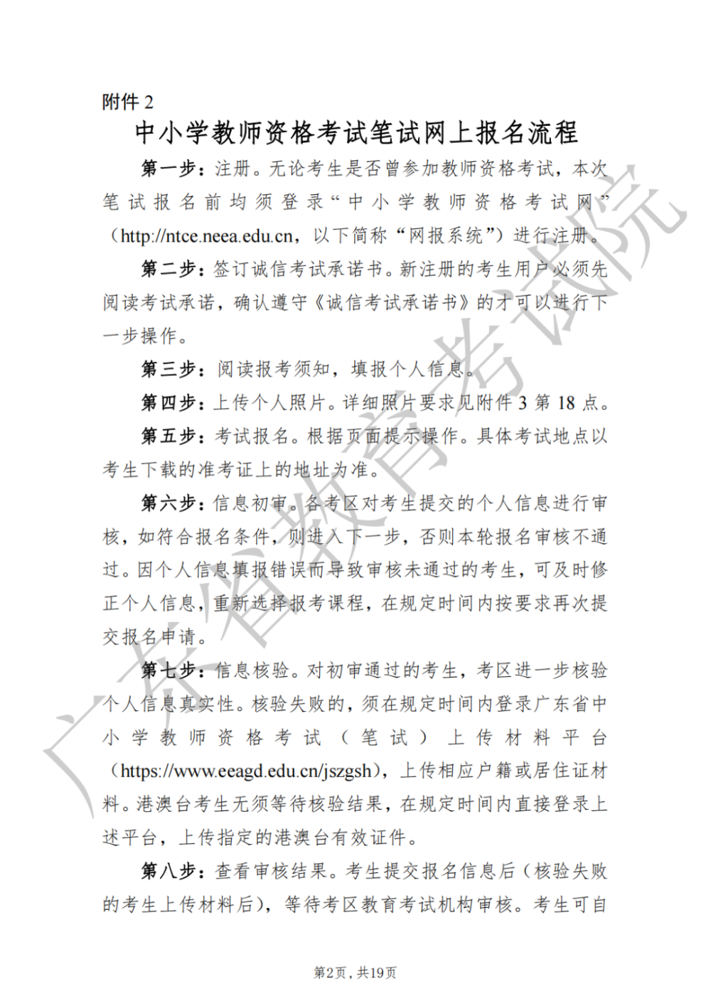 考生须在规定的时间内,登录国家“中小学教师资格考试网”(http://ntce.neea.edu.cn),按照栏目指引进行网上报名。网上报名的考生,须保证本人的报名信息真实有效且具有报名资格。不符合报名条件或信息填写错误而参加中小学教师资格考试者,后果自负。请考生务必认真阅读具体报名流程及注意事项(见附件2、3),并遵照执行。