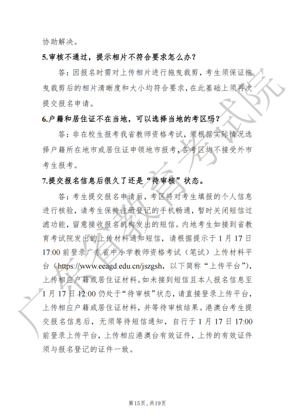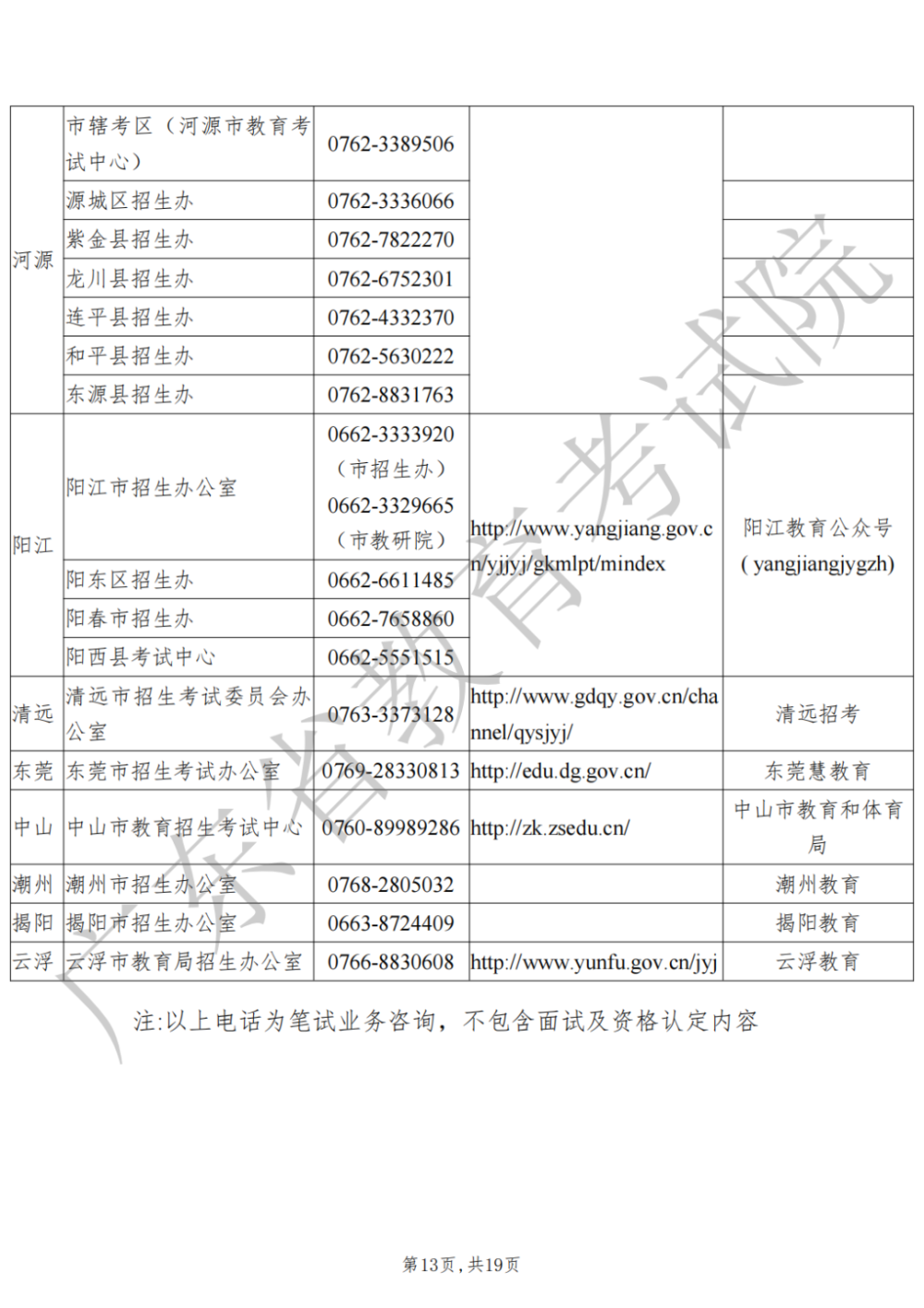 5.广东省全国中小学教师资格考试笔试工作联系方式