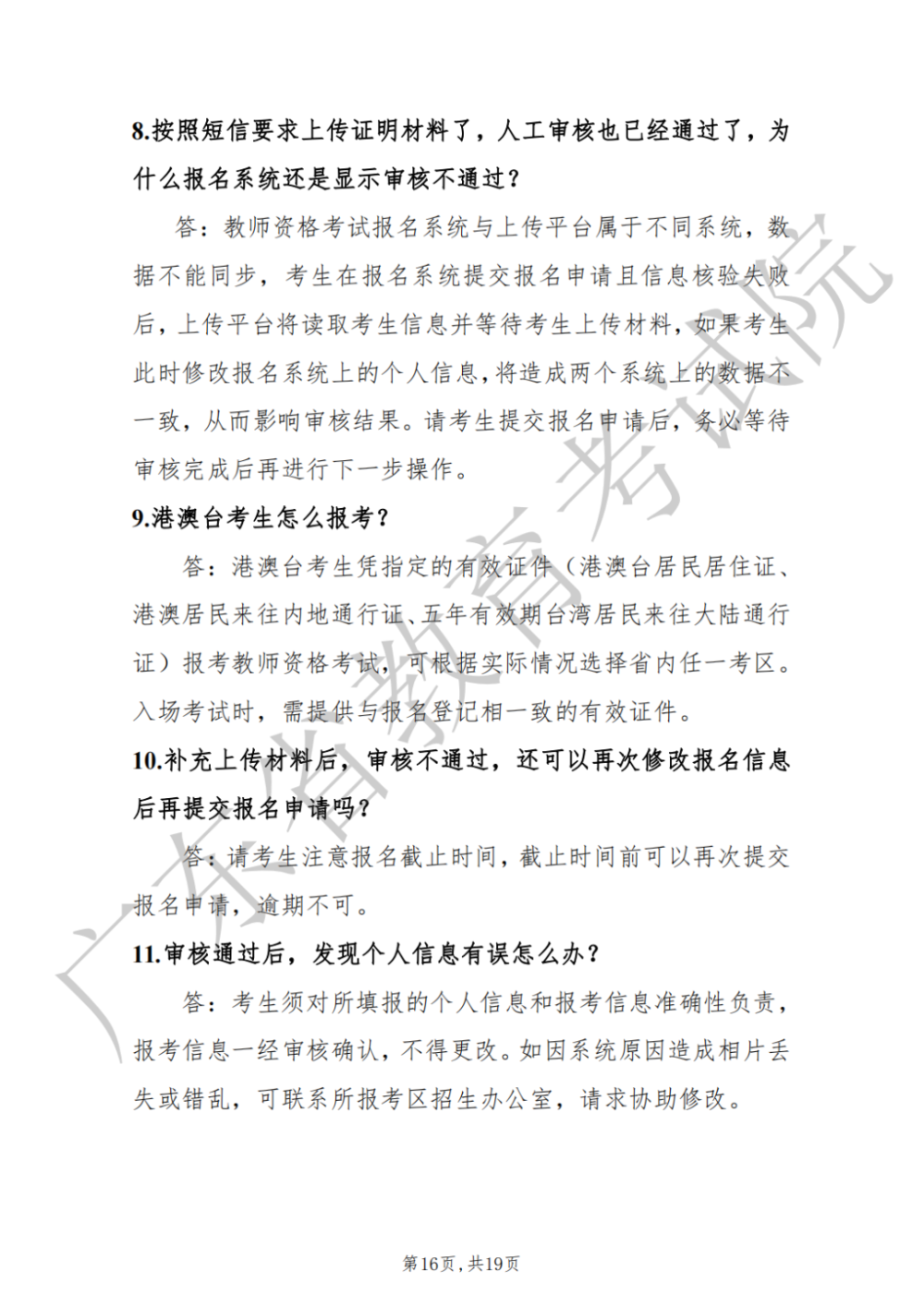 6.中小学教师资格考试(笔试)报名常见问题及解答