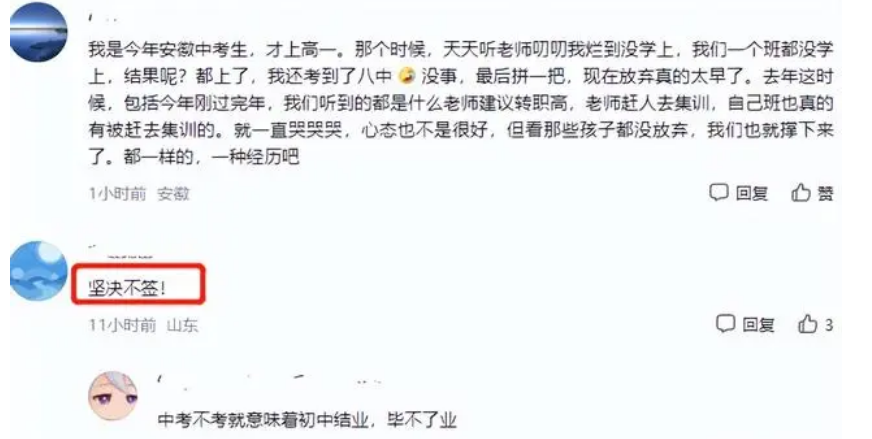 是否真的应该放弃参加中考,网友的看法引人深思,家长艰难抉择