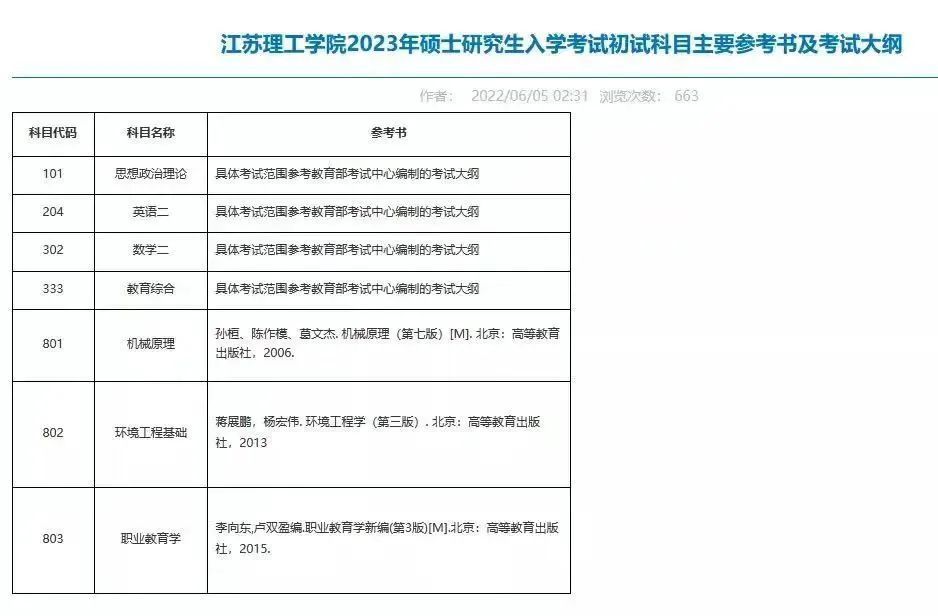 江苏理工学院发布了2023年硕士研究生入学考试初试科目主要参考书及考试大纲。