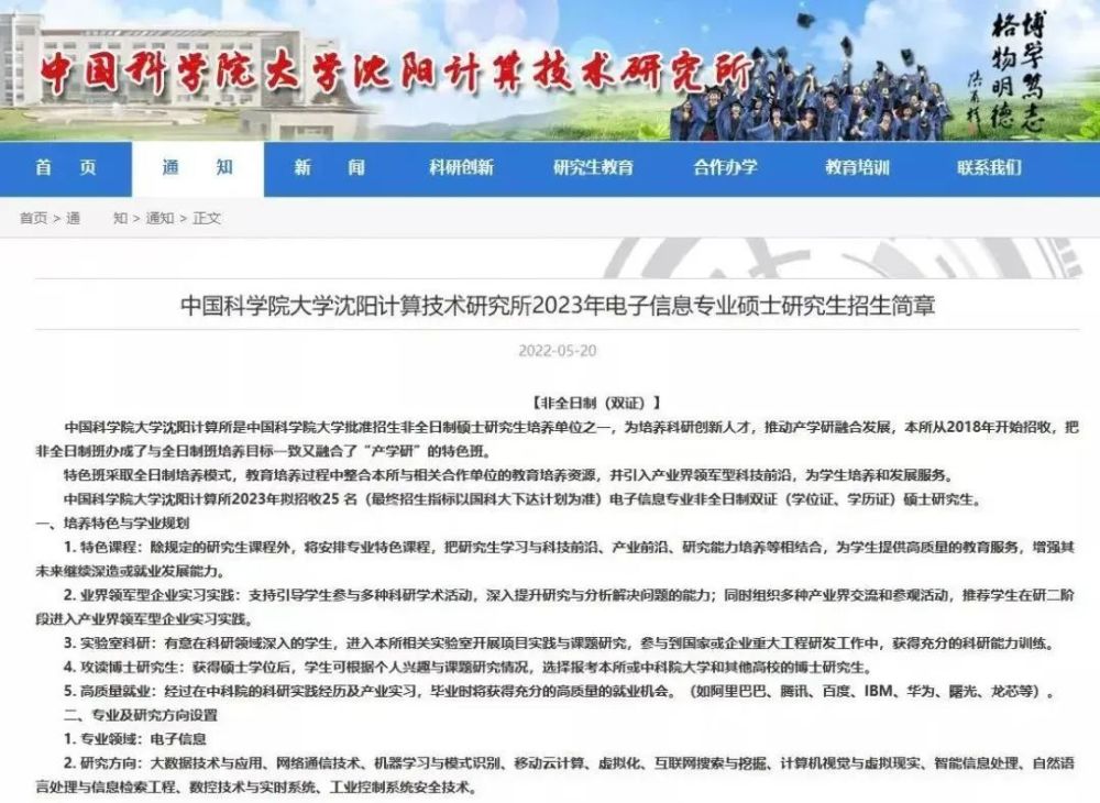 中国科学院大学沈阳计算技术研究所发布了2023招生简章。