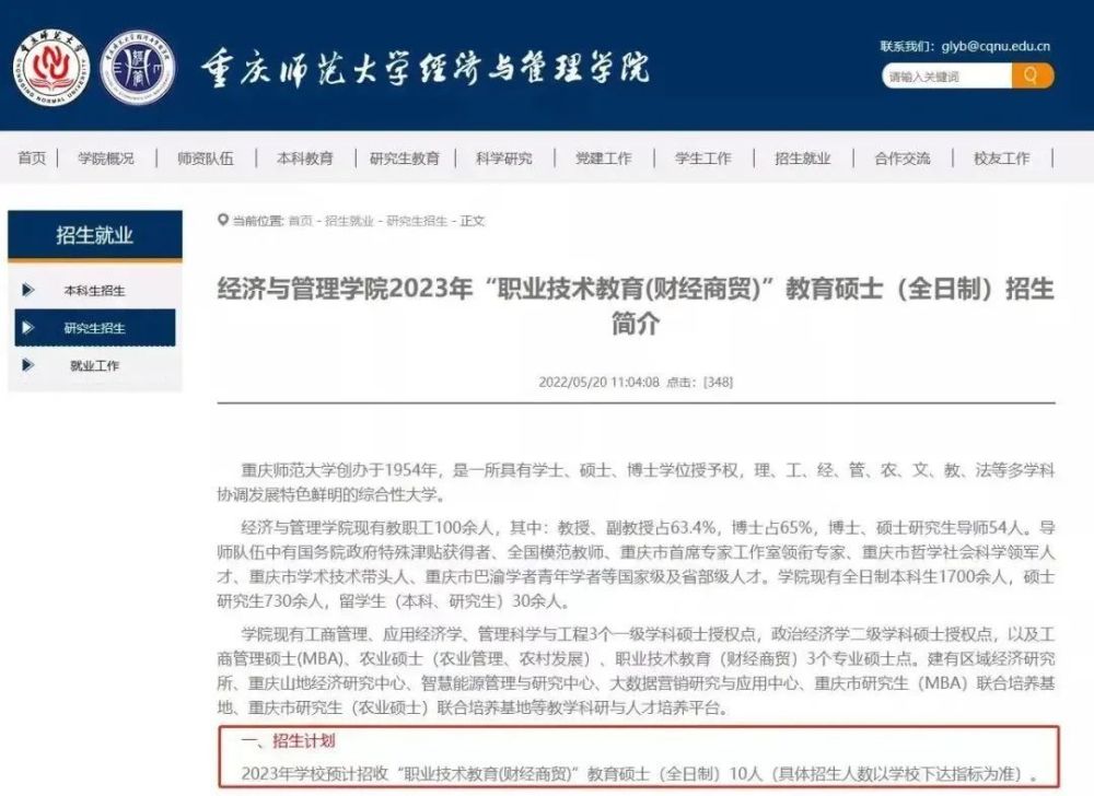 重庆师范大学经济与管理学院发布了2023年教育硕士招生简章。