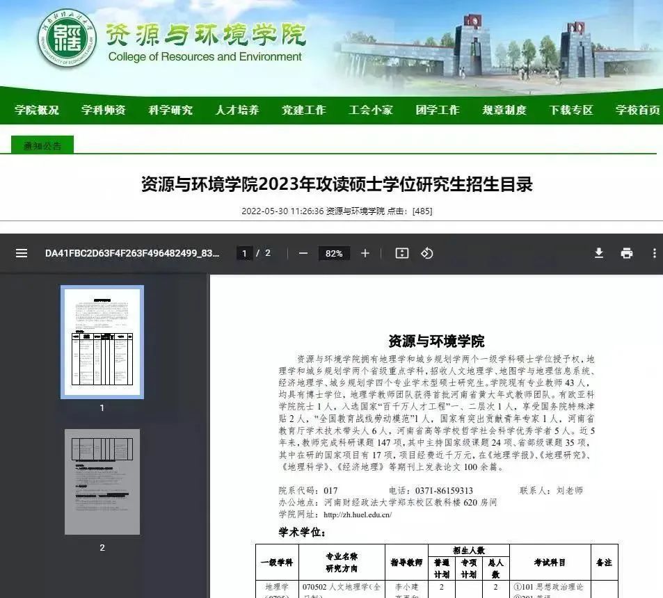 河南财经政法大学资源与环境学院公布了2023年攻读硕士学位研究生招生目录。