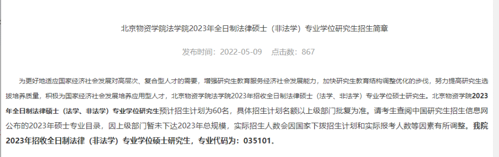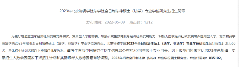 北京物资学院法学院已公布,2023全日制法律硕士(法学&非法学)招生简章。