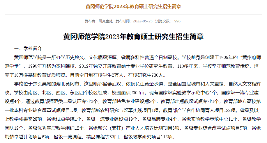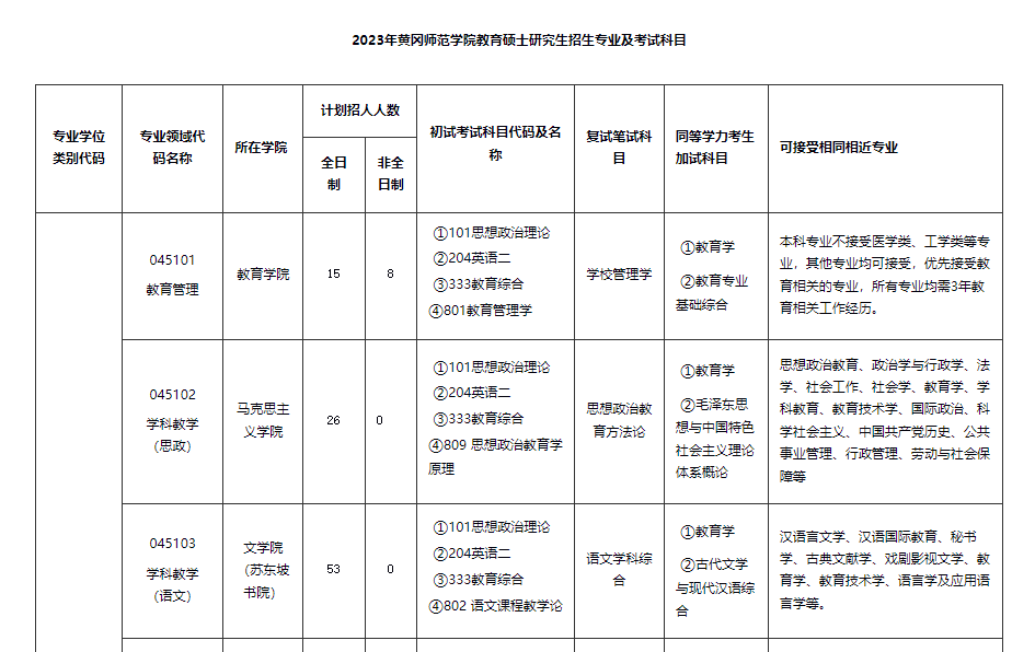 5月25日,黄冈师范学院公布了2023年教育硕士研究生招生简章&招生专业&初试科目。