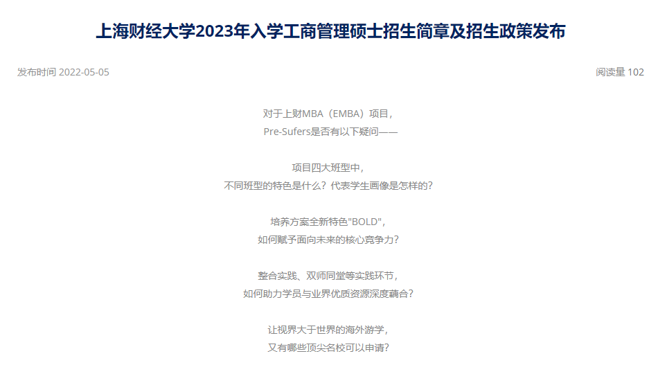 上海财经大学商学院公布了2023级工商管理硕士招生简章。