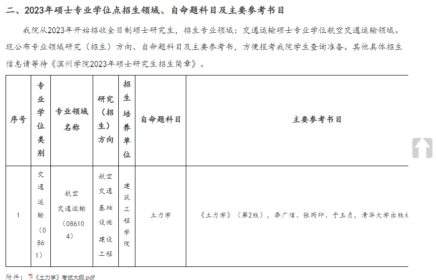 滨州学院建筑工程学院,5月20日公布了2023年硕士研究生招生公告、招生领域、自命题科目及主要参考书目。
