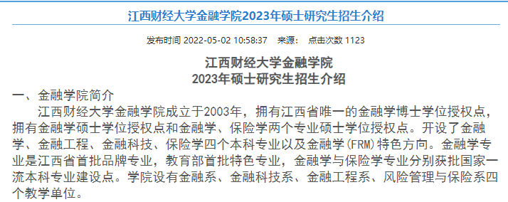 江西财经大学金融学院,5月2日公布了2023年硕士研究生招生介绍&招生专业&参考书目。