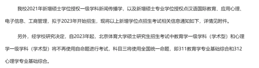 新增新闻传播学(学硕)、汉语国际教育(专硕)、应用心理、电子信息(人工智能、大数据技术与工程)、工商管理拟于2023年起开始招生。