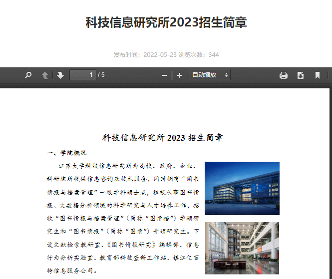 江苏大学图书馆科技信息研究所,5月23日公布了2023硕士招生简章。