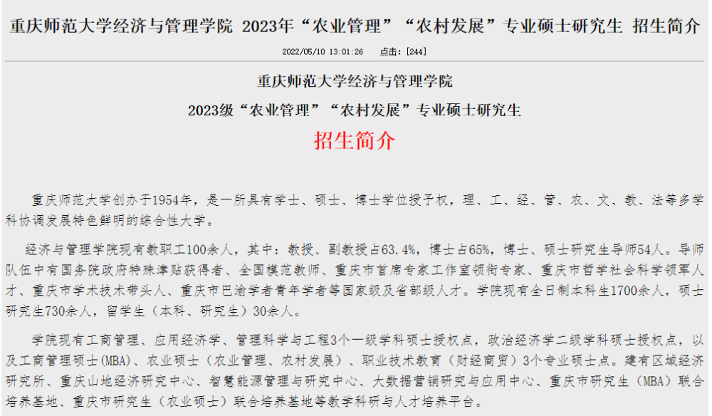 并且,还公布了“农业管理”“农业发展”专业硕士招生信息。