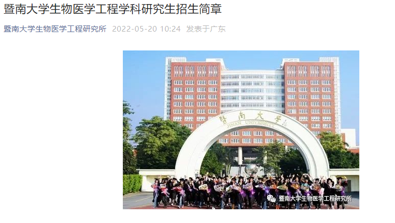 5月20日,暨南大学生物医学工程研究所公布2023研究生招生简章&招生专业。