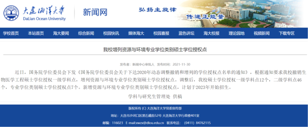 新增资源与环境专业学位类别硕士学位授权点,计划于2023年开始招生。
