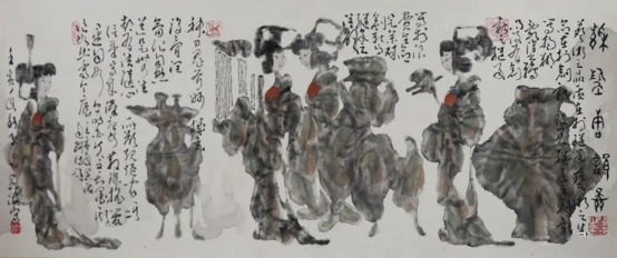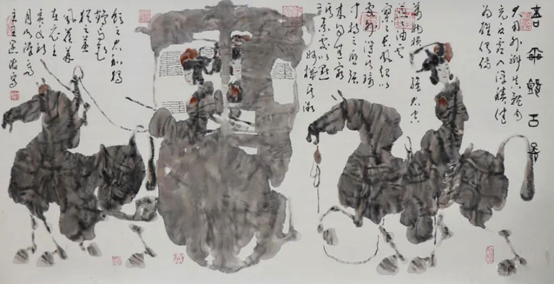 画家成功的重要标志之一是成功的建树起个人独特的艺术面貌和全新的笔墨语言,阔海先生中西绘画功力深厚,特别是极其聪明。极其巧妙的挖掘了汉画的艺术矿藏,成功的转接成国画语言、取得巨大成功,令人钦佩!叹赞之中也给我们深刻的启发!