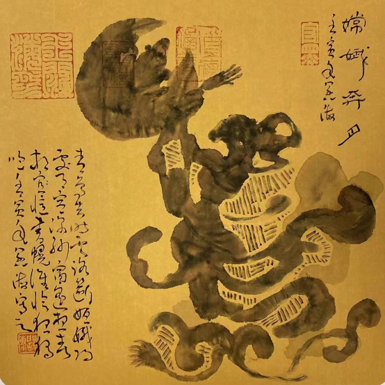 三是风神飘然,王先生的新汉画艺术在继承汉画像石厚重、大气、质朴风格的同时,以笔墨、以诗书画为载体,更融入了灵动、自由、飘然的情怀与境界,这是最难能可贵的。