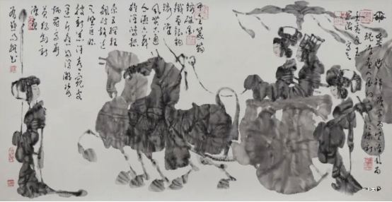 王阔海的新汉画给我们带来了大汉雄风,他对没骨法的笔墨驾御能力非常强。