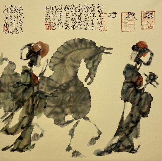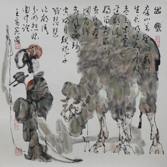 王阔海先生的新汉画很巧妙的把写实主义的造型与平面化的造型和没骨画法进行了有机的结合,形成了王阔海式的水墨人物画的造型特征,达到了一个新的境界。