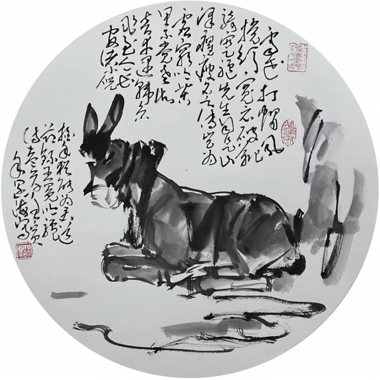 王阔海先生的新汉画感觉特棒!尤其是大写意没骨画,独辟蹊径,独树一帜,十分可贵!写意毛驴造型生动,下笔准确,黃胄以来无人能及。再配以书法,书画合璧,更显匠心。