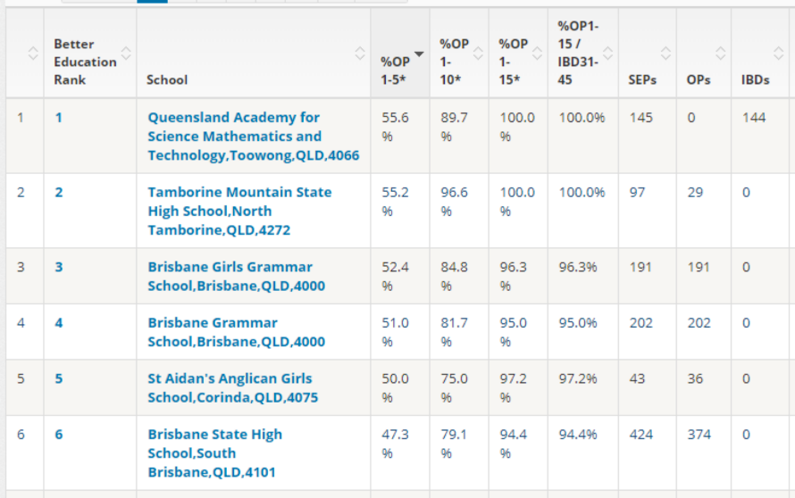 下图我截取了2019年昆士兰州高考成绩排名,在前五名里,精英私校占了三所。