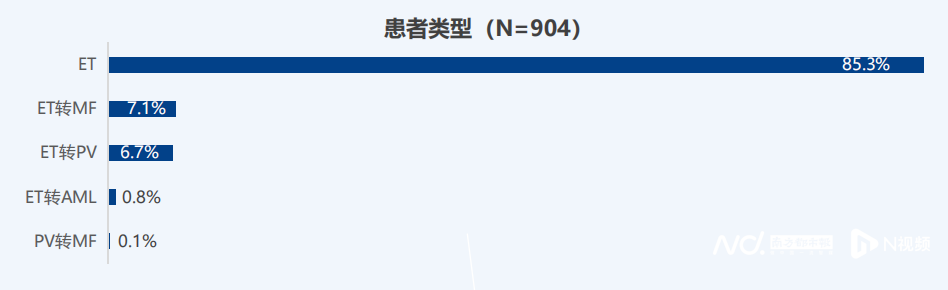 据悉,本次调研通过定性和定量结合的方式,共完成2位血液科医生、3位患者定性调研和118位血液科医生、904位患者定性调研。参与调研的904位患者中确诊为原发性血小板增多症(ET)患者最多,约85%。