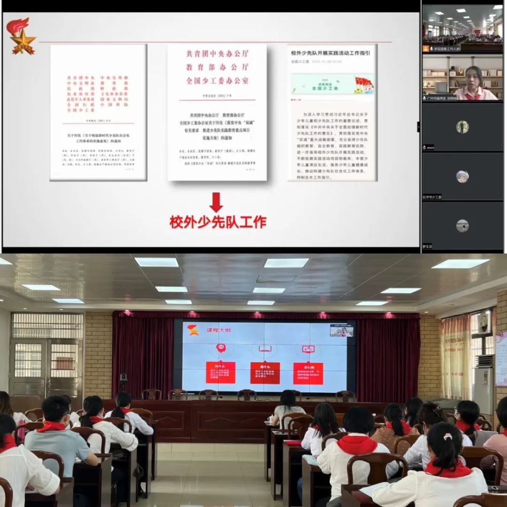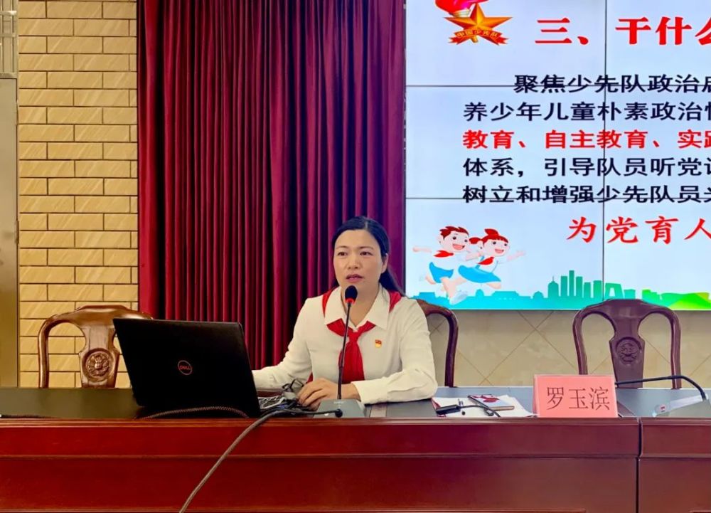 第一堂课是广东省少先队辅导员导师团导师,云浮市校外总辅导员罗玉滨老师的《立足新时代 担当新使命——我是光荣的少先队辅导员》主题课程,从政治理论学习、仪式教育到少先队专业知识、少先队组织建设、阵地建设等多方面进行详细的授课,并结合实践研讨和现场教学等方式进行。