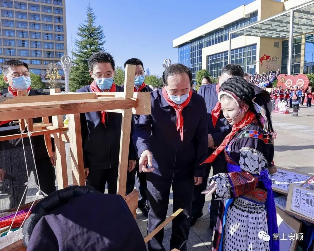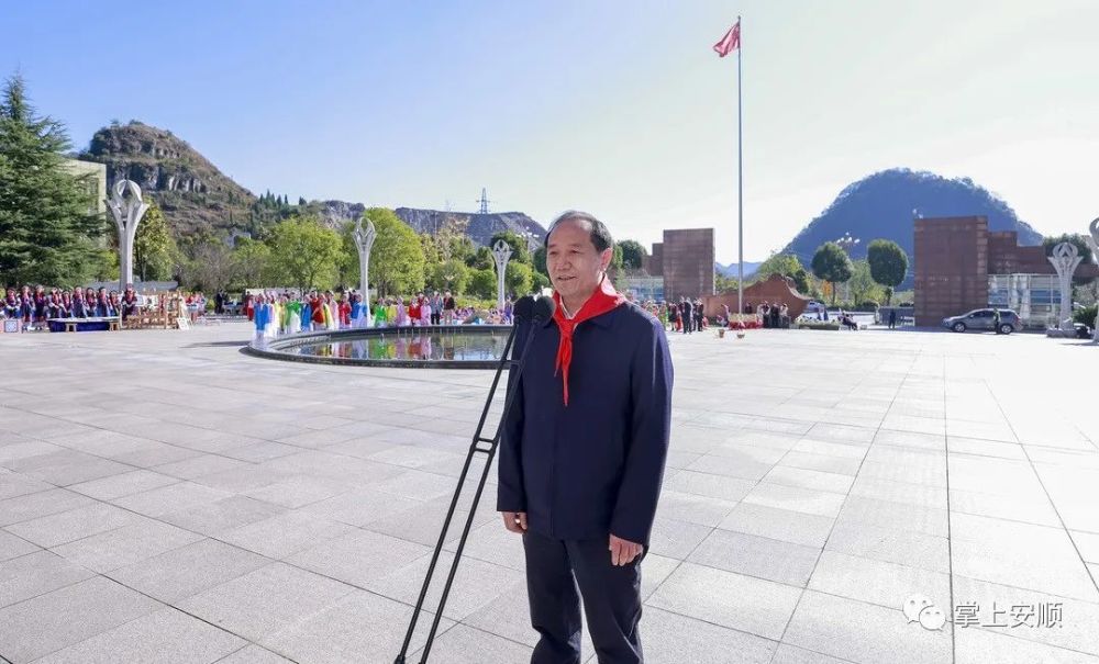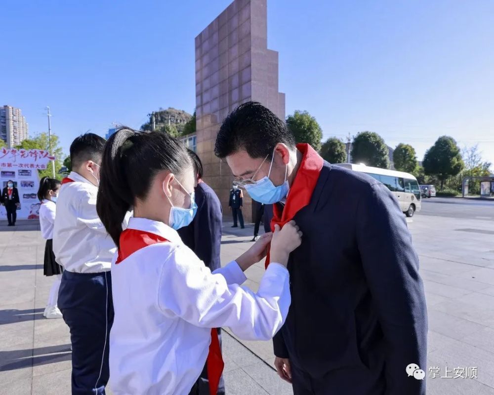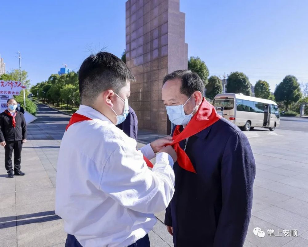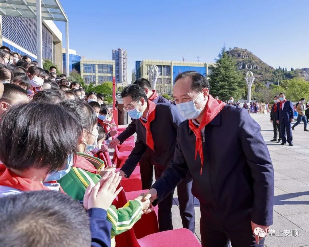 杨昌鹏、尹恒斌等同代表们亲切握手,少先队员为杨昌鹏等戴上鲜艳的红领巾。随后,市领导们观看了安顺市少先队工作展板和“红领巾社团”活动展示,并与全体参会代表合影留念。杨昌鹏代表市四大班子向大会的召开表示祝贺,向全市广大少先队员、少先队辅导员、少先队工作者致以亲切的问候。他说,近年来,全市少先队组织牢牢把握培育共产主义接班人的根本任务,团结、教育、引领少年儿童健康成长、全面发展,全市少先队工作蓬勃发展,取得了突出的成绩。