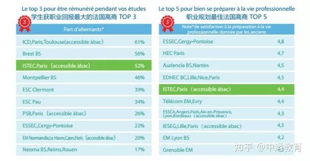 ISTEC在法国学生获得职业回报巨大的高商中,排名第3;在法国职业规划很棒的法国高商中,排名第5。