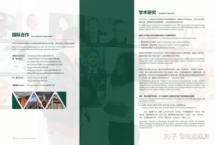 ISTEC和其他高声望学府有着密切的科研教育合作,如美国卡内基梅隆大学、英国伦敦华威大学、巴黎多芬纳(九大)大学等,他们与ISTEC及其他商学院分享杰出的科研教学水平和丰富的商务知识经验。