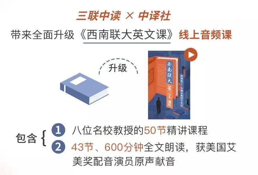三联中读分别联手译林出版社、中译出版社打造《西南联大国文课》、《西南联大英文课》音频课程,邀请业内名师深入解读这两本教材,这些老师承袭了西南联大的学术传统,了解彼时文学大师们编撰教材的深意,旁征博引,妙语连珠,力图再现西南联大课堂。每一位主讲人都是各自研究领域的佼佼者,因此,这门课程绝对会给你带来一场不同凡响、极为难得的学习体验。让专业的人带你读有趣而有价值的书。